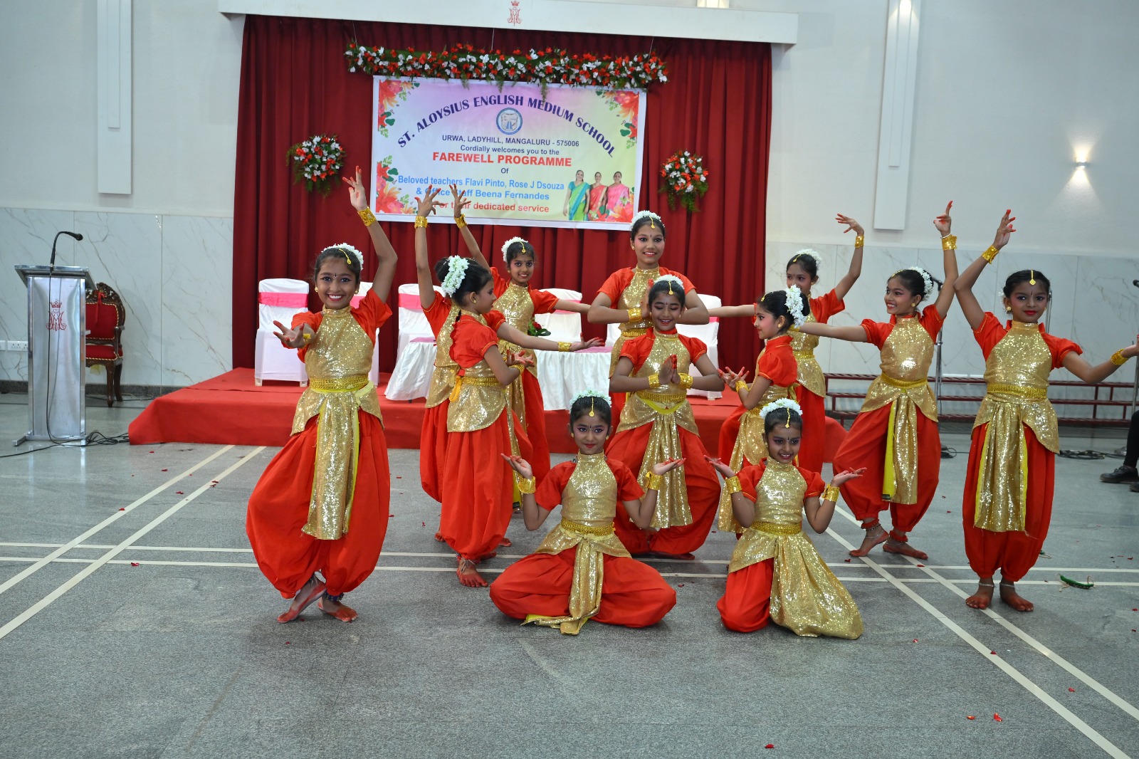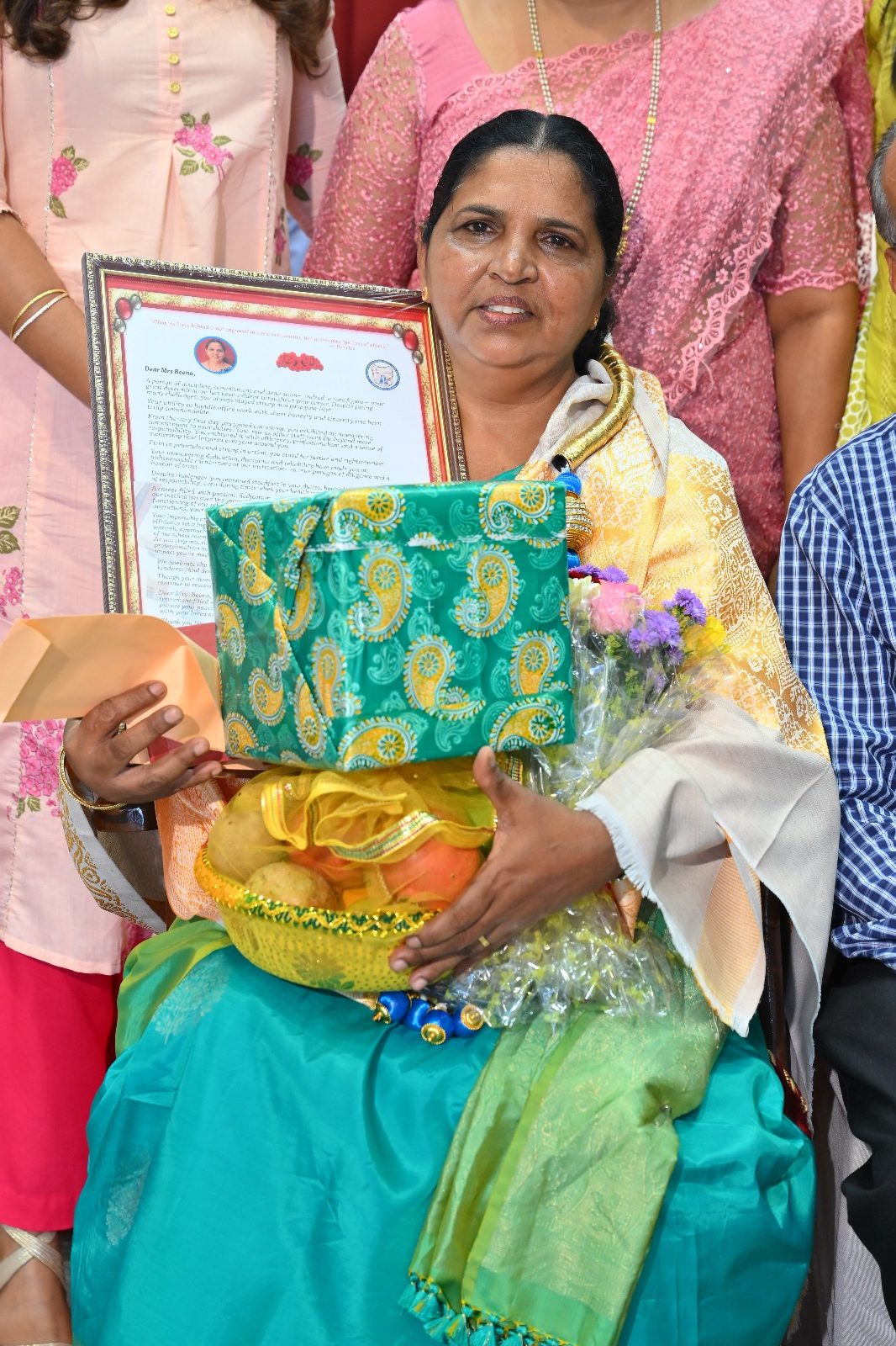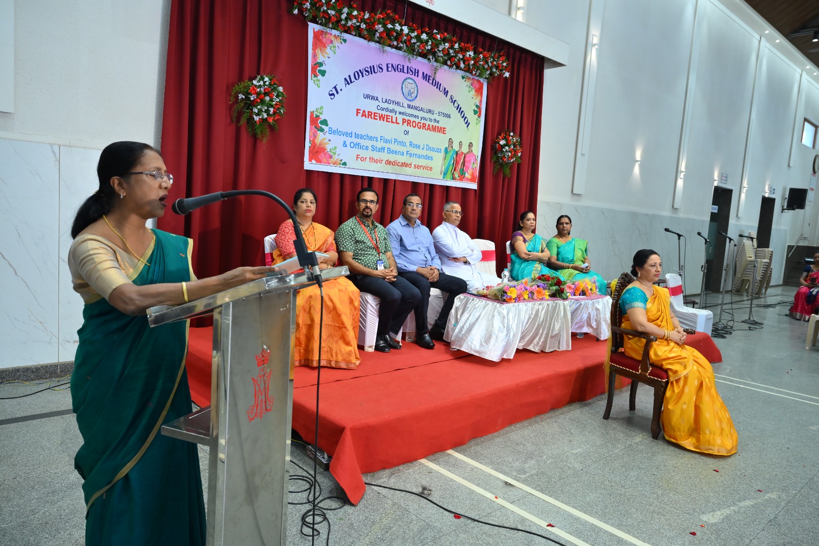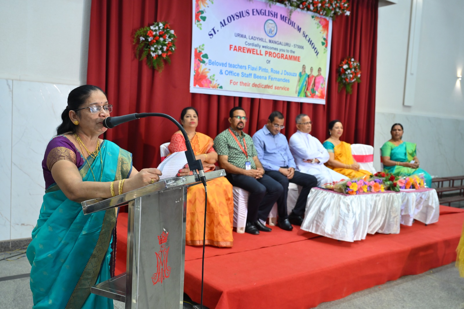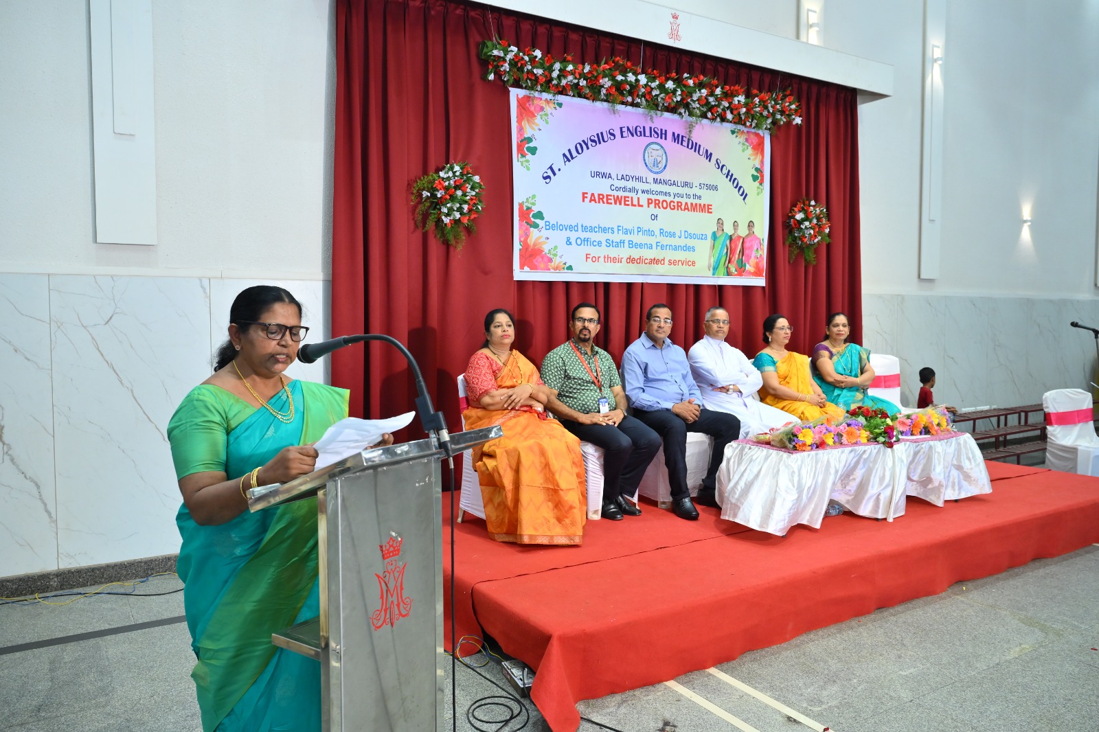 The highlight of the ceremony was the reading of the citations, acknowledging the dedication and service of Mrs. Falvi Pinto citation was read by Sir Raj Kiran, Mrs. Rose D’Souza citation was read by teacher Laveena Pinto, and Mrs. Beena Fernandes citation was read by Mr. Cyril Crasta. They were then felicitated with a shawl, garland, fruits, flowers, and gifts as a token of respect and admiration.