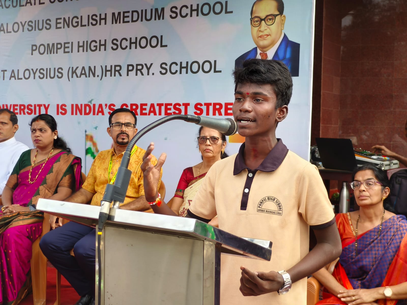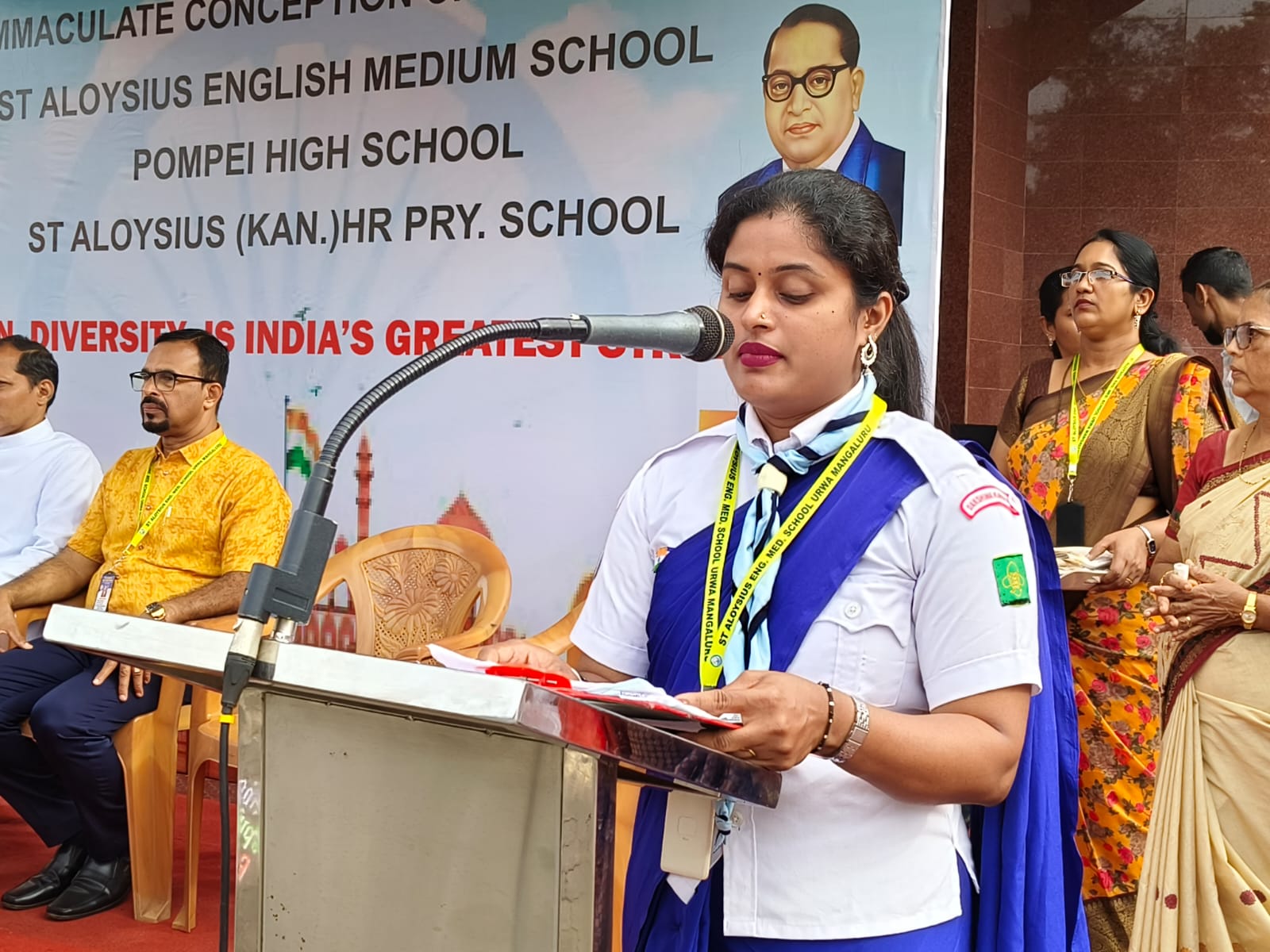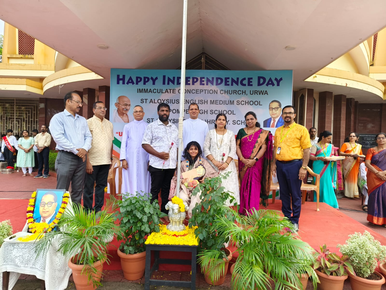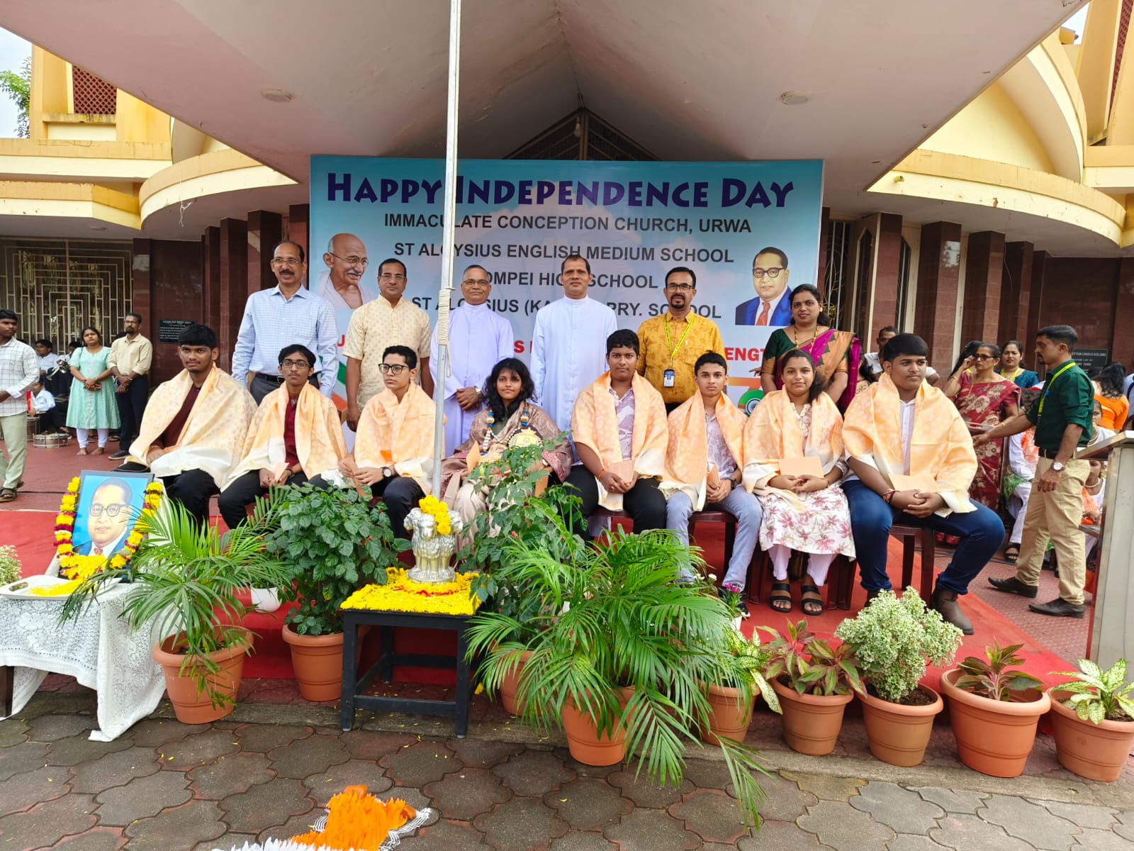St Aloysius English Medium School, Urwa, joyfully celebrated the 79th Independence Day of our nation on 15th August 2025 at the Urwa Church grounds, with great pride and patriotism. The programme commenced with the welcome of dignitaries – Correspondent Rev. Fr. Benjamin Pinto, Asst. Priest Fr. Lanson Maxim Pinto, Chief Guest Rev. Fr. Rajesh Melwin Rosario – Rector – St. Joseph’s Interdiocesan Seminary Jeppu, Mr. Loyd Lobo Vice president – Parish Pastoral Council, Headmaster Mr. Aloysius D’Souza, Headmistress of St Aloysius Kannada Medium School, and the Headmistress Pompei High school. Urwa.